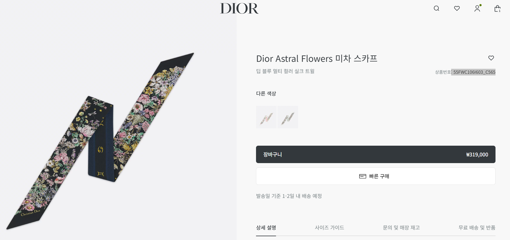 수술 후 목 부위 흉터가 신경 쓰이는 시기에는, 자외선 차단이 특히 중요합니다. 자외선은 흉터를 더 진하게 만들 수 있어, 회복 과정에 영향을 줄 수 있기 때문이에요. 하지만 목을 덮는다고 해서 꼭 답답하고 무거운 소재를 선택할 필요는 없습니다. 저는 수술 후 외출할 때 가볍고 촘촘한 실크 스카프를 자주 활용해요. 특히, 오늘 소개할 Dior Astral Flowers 미차 스카프는 단순히 예쁜 액세서리가 아니라, 자외선 차단과 흉터 보호, 그리고 패션 포인트까지 한 번에 해결해 주는 아이템입니다. 햇빛이 강해지는 계절, 패션 아이템 하나로 자외선 차단까지 된다면 얼마나 좋을까요? 오늘은 Dior Astral Flowers 미차 스카프(딥 블루 멀티 컬러 실크 트윌)가 얼마나 자외선을 막아주는지, 직접 분석해봤어요.